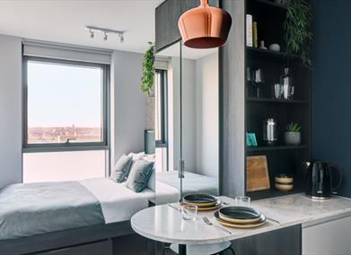 ARK Canary Wharf is the largest co-living space in London, located in the vibrant Canary Wharf area, just minutes away from the Crossharbour DLR station. It offers easy access to Central London and Canary Wharf and is less than a 15-minute drive from historic Greenwich, the ExCeL London center, and London City Airport. Guests, or “members,” of ARK Canary Wharf can enjoy flexible stays ranging from a night to a year in studios designed to maximise space. These studios feature modern amenities such as smart storage solutions, a kitchenette, smart TV, hairdryer, safe, and a private ensuite bathroom. Amenities at ARK Canary Wharf include a fitness gym, wellness studio, spa, 20th-floor swimming pool, sauna, bar, café, co-working areas, stylish communal spaces, and regular events.