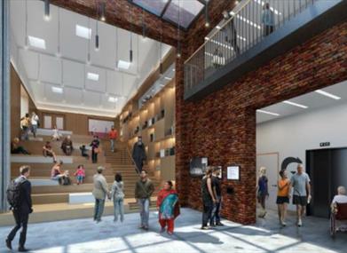 The leisure and Arts elements include a 33 station gym with top of the range Technogym equipment, two dance studios which will form the base for a Performing Arts programme. Also included is a exciting soft play facility for under-8's, cafe, sports area with a badminton court as well as three meeting rooms and a large naturally lit open space for courses, hire and arts & culture events.