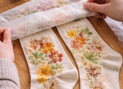 Eco printing is a nature-led technique that captures the colour, shape, and texture of plants through direct contact with fabric. Rather than using inks or dyes, participants work with seasonal flowers and leaves, allowing the plants themselves to leave unique marks. The process celebrates experimentation, patience, and the quiet joy of working with natural materials, where no two results are ever the same.