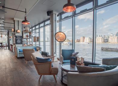 The Sail Loft is a sleek, warm pub with magnificent views of the Thames by day and of the Canary Wharf skyline at night.